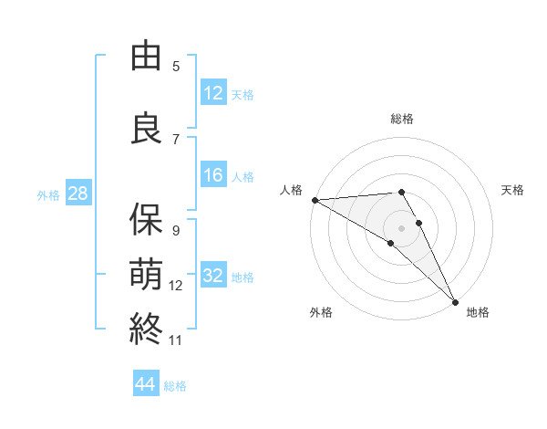 由良 保萌終さんを姓名の画数から五運を鑑定
