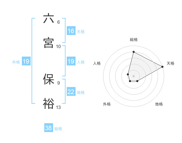 六宮 保裕さんを姓名の画数から五運を鑑定