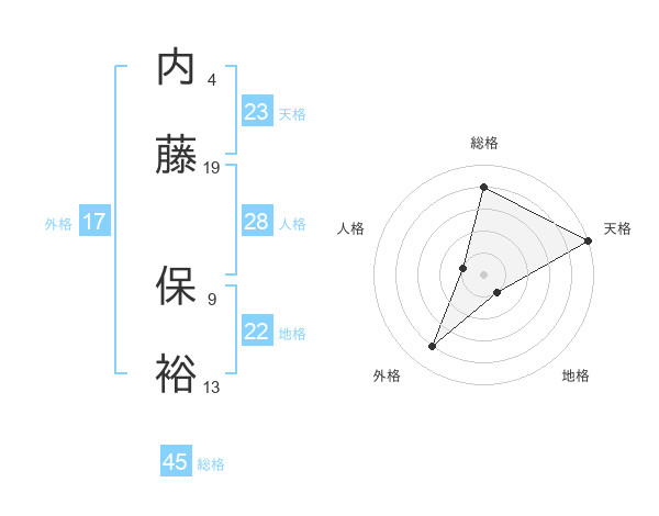 内藤 保裕さんの総格は45画の4点!