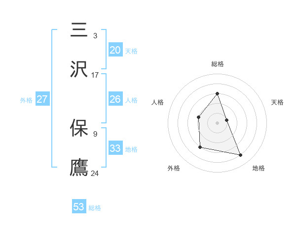 三沢 保鷹さんの総格は53画の3点!
