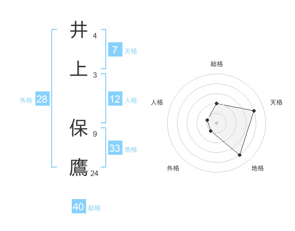 井上 保鷹さんの総格は40画の2点!