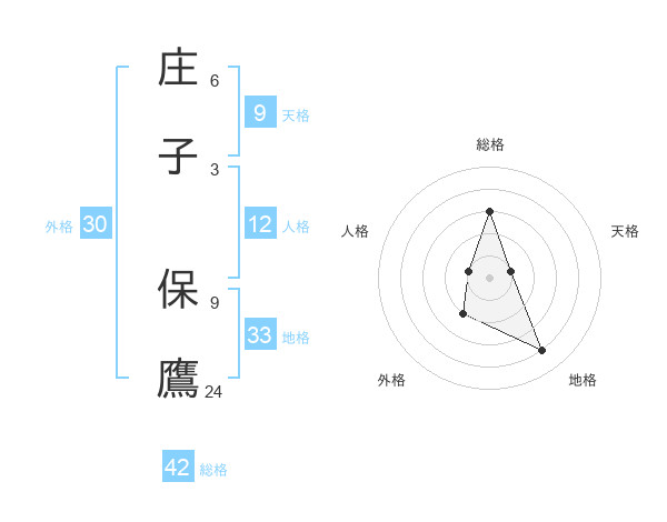 庄子 保鷹さんの総格は42画の3点!