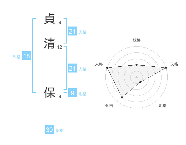 貞清 保さんの天格は21画の5点!