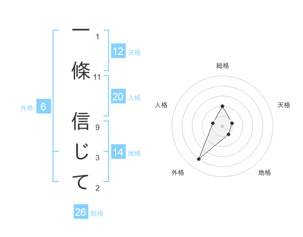 一條 信じてさんの総格は26画の2点!