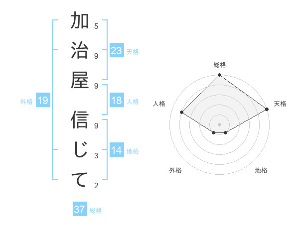 加治屋 信じてさんを姓名の画数から五運を鑑定