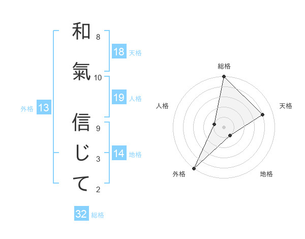 和氣 信じてさんを姓名の画数から五運を鑑定