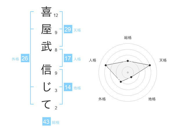 喜屋武 信じてさんの天格は29画の4点!