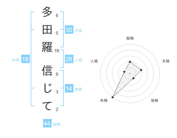 多田羅 信じてさんを姓名の画数から五運を鑑定