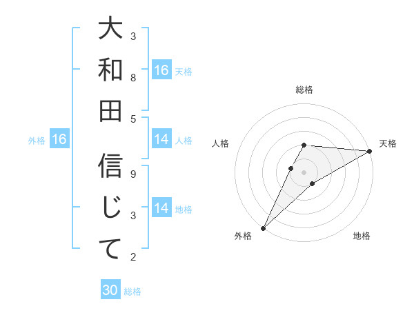 大和田 信じてさんの総格は30画の2点