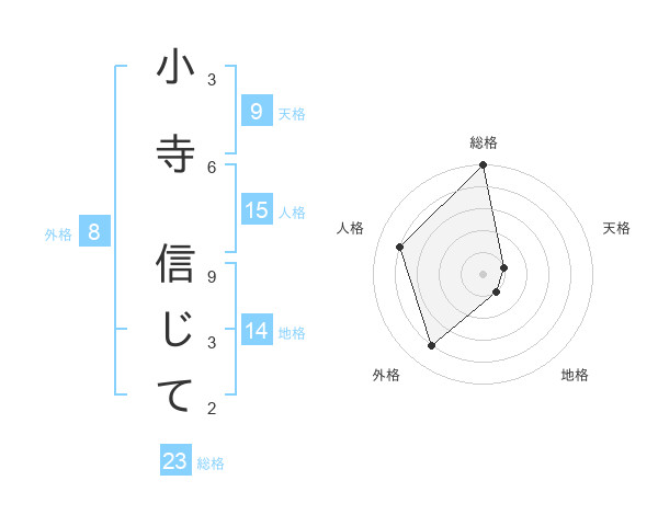 小寺 信じてさんを姓名の画数から五運を鑑定