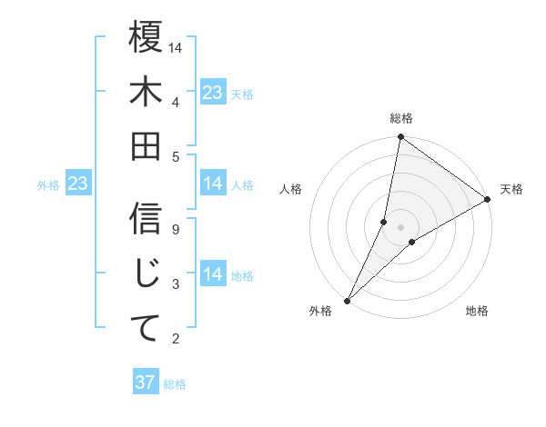 榎木田 信じてさんの天格は23画の5点