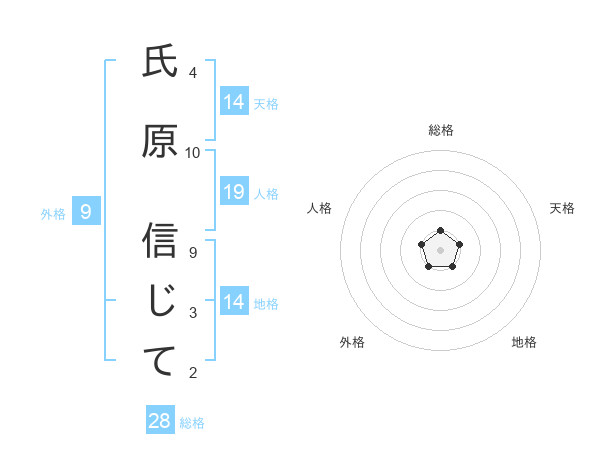 氏原 信じてさんの天格は14画の1点!