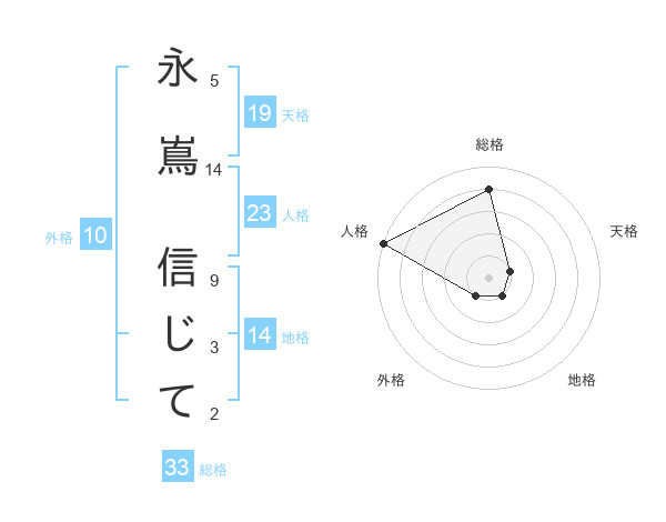 永嶌 信じてさんを姓名の画数から五運を鑑定