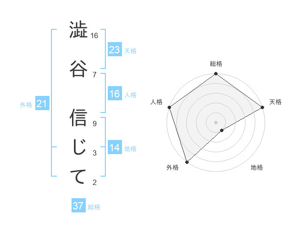 澁谷 信じてさんを姓名の画数から五運を鑑定