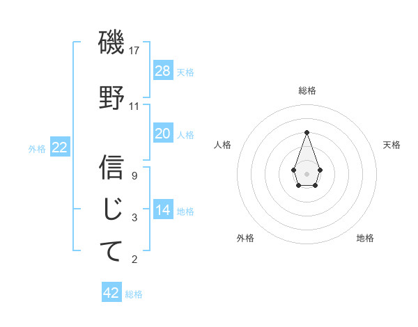 磯野 信じてさんを姓名の画数から五運を鑑定