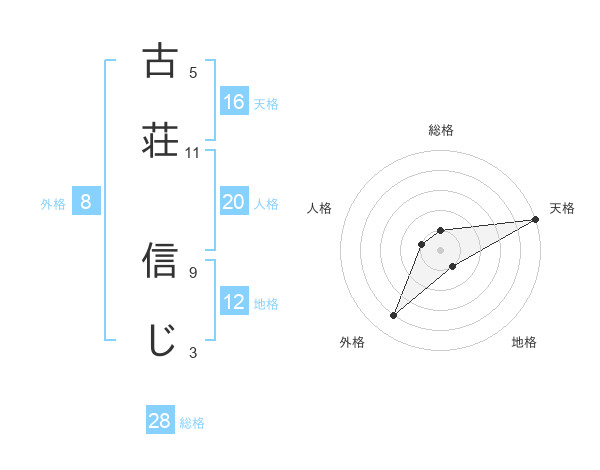 占い結果は姓名判断である以上、良い場合も悪い場合もありますが、決してお名前を誹謗中傷するものでなく、画数の自動計算によって得られたものです。また、本サイトの検索によって得られた鑑定結果で、第三者を誹謗中傷したり名誉を棄損するような行為を禁じます。