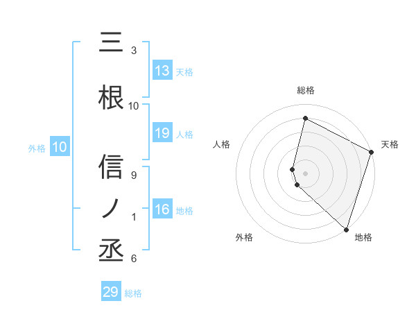 三根 信ノ丞さんの総格は29画の4点!