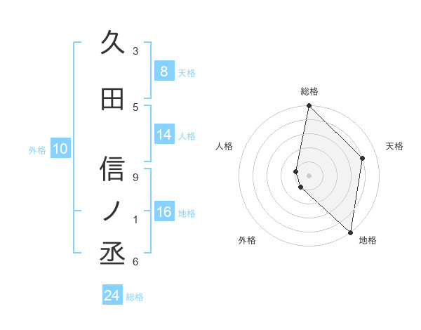 久田 信ノ丞さんを姓名の画数から五運を鑑定
