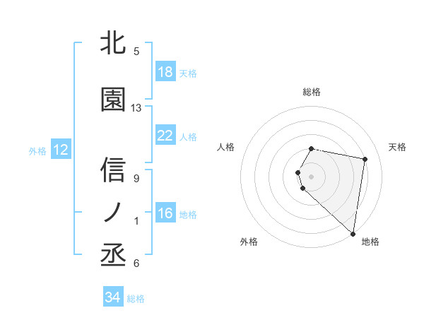 北園 信ノ丞さんを姓名の画数から五運を鑑定