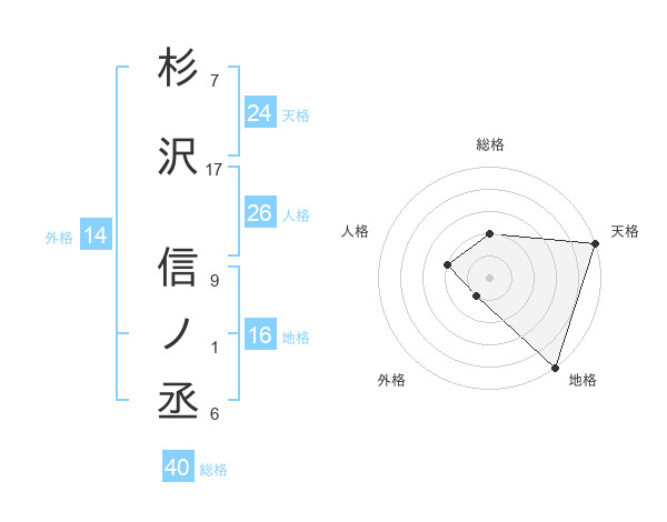 杉沢 信ノ丞さんを姓名の画数から五運を鑑定