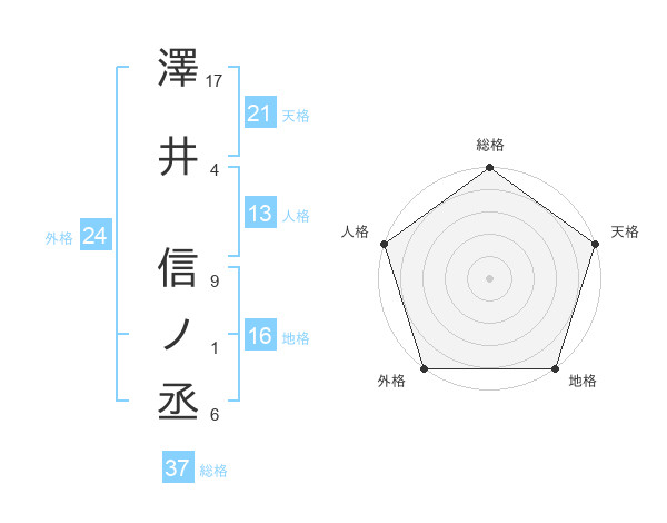 澤井 信ノ丞さんの天格は21画の5点!