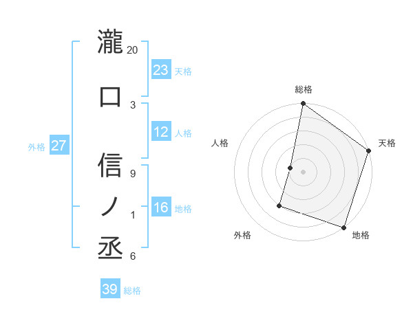 瀧口 信ノ丞さんを姓名の画数から五運を鑑定
