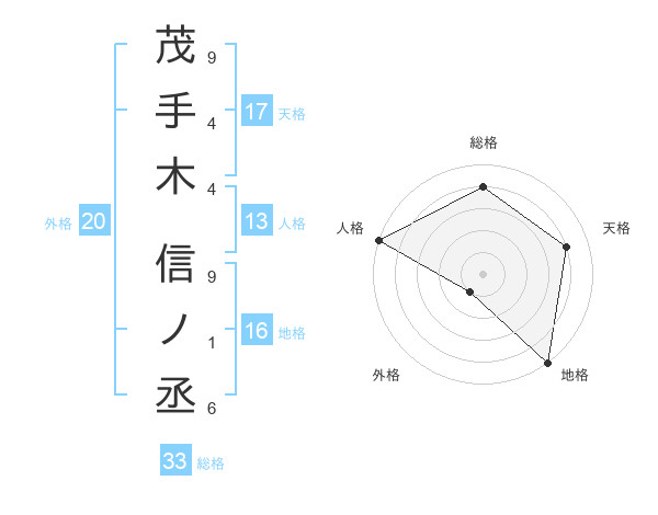 茂手木 信ノ丞さんの人格は13画の5点!