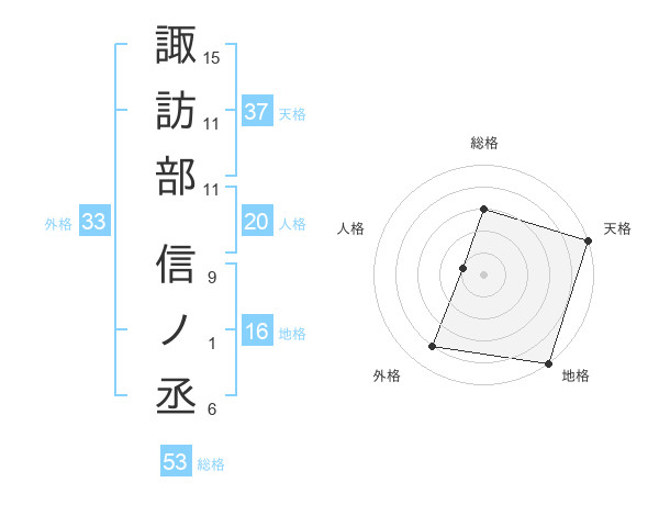 諏訪部 信ノ丞さんの外格は33画の4点!