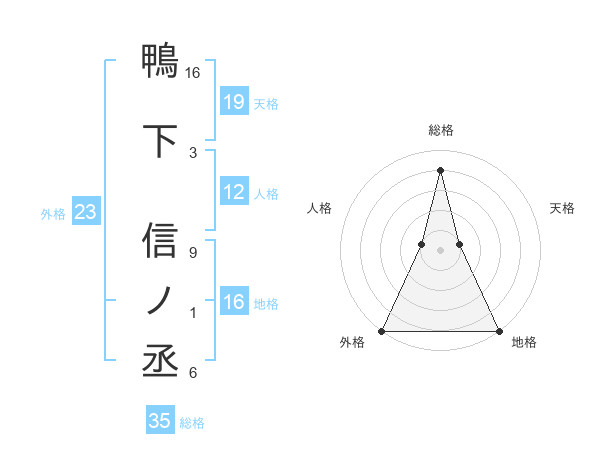 鴨下 信ノ丞さんを姓名の画数から五運を鑑定