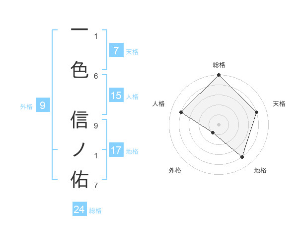 一色 信ノ佑さんを姓名の画数から五運を鑑定