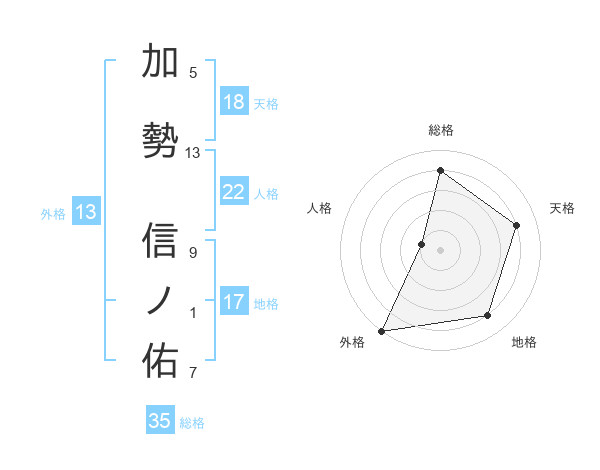 加勢 信ノ佑さんを姓名の画数から五運を鑑定