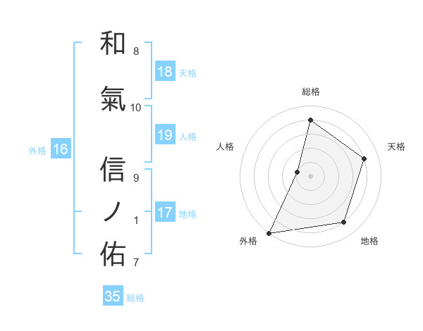 和氣 信ノ佑さんを姓名の画数から五運を鑑定