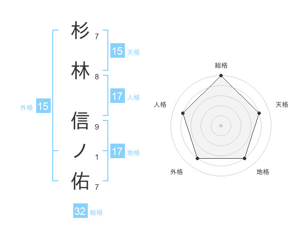 杉林 信ノ佑さんの地格は17画の4点!