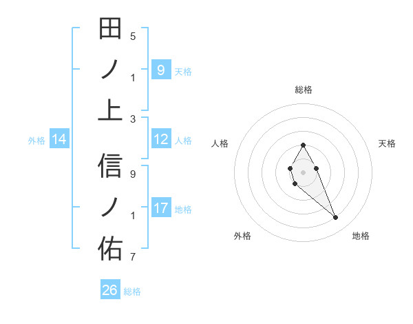 田ノ上 信ノ佑さんの総格は26画の2点!