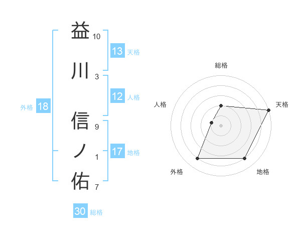 益川 信ノ佑さんの地格は17画の4点!