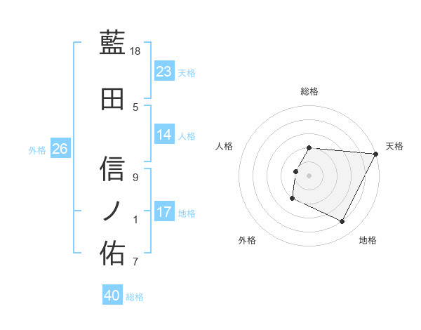 藍田 信ノ佑さんを姓名の画数から五運を鑑定