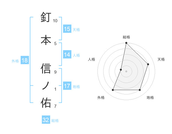 釘本 信ノ佑さんを姓名の画数から五運を鑑定