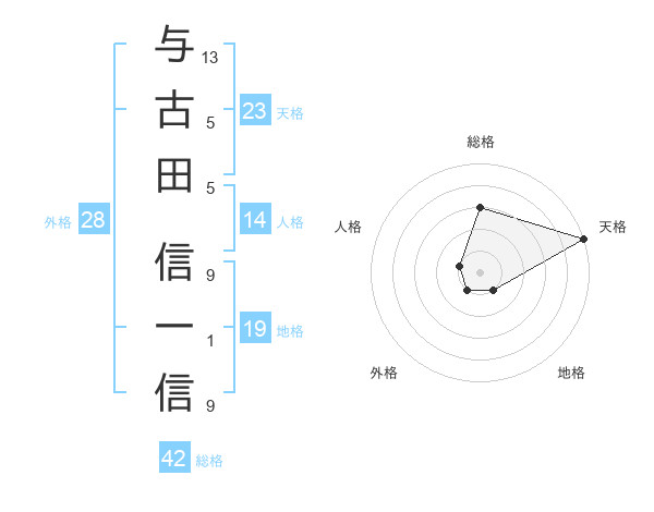 与古田 信一信さんを姓名の画数から五運を鑑定
