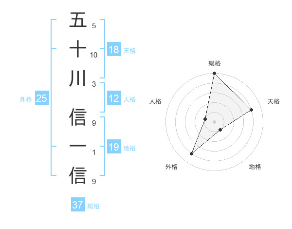 五十川 信一信さんを姓名の画数から五運を鑑定