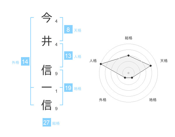 占い結果は姓名判断である以上、良い場合も悪い場合もありますが、決してお名前を誹謗中傷するものでなく、画数の自動計算によって得られたものです。また、本サイトの検索によって得られた鑑定結果で、第三者を誹謗中傷したり名誉を棄損するような行為を禁じます。