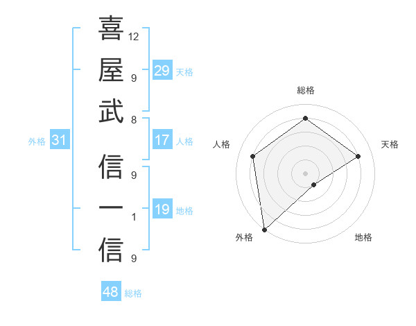喜屋武 信一信さんの外格は31画の5点!