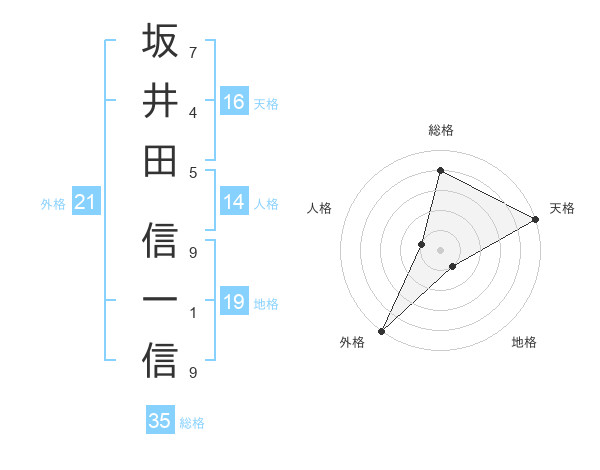 坂井田 信一信さんの総格は35画の4点!