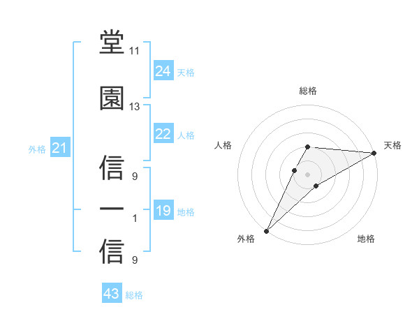 堂園 信一信さんを姓名の画数から五運を鑑定