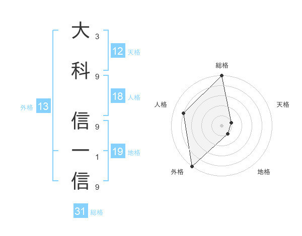大科 信一信さんの総格は31画の5点!