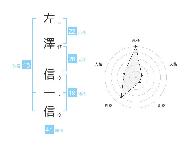 左澤 信一信さんを姓名の画数から五運を鑑定