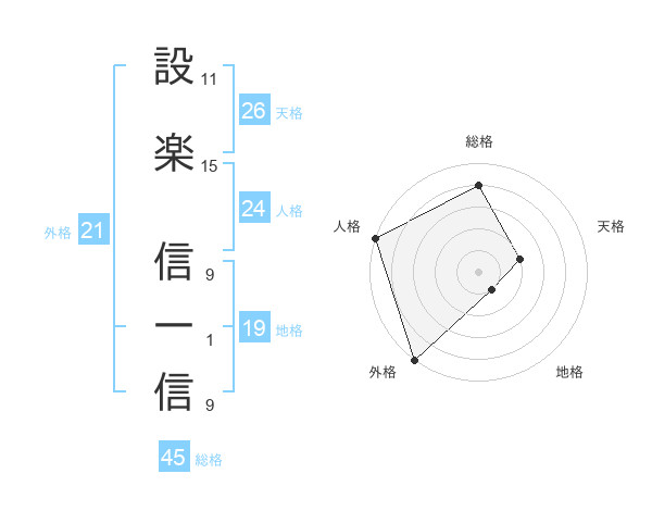 設楽 信一信さんを姓名の画数から五運を鑑定