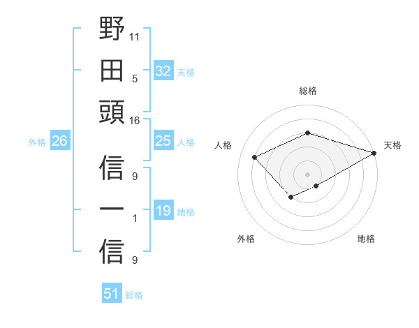 野田頭 信一信さんを姓名の画数から五運を鑑定