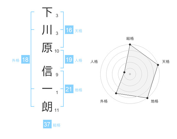 下川原 信一朗さんの総格は37画の5点!