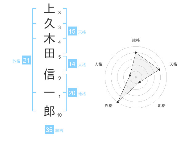 上久木田 信一郎さんの総格は35画の4点!