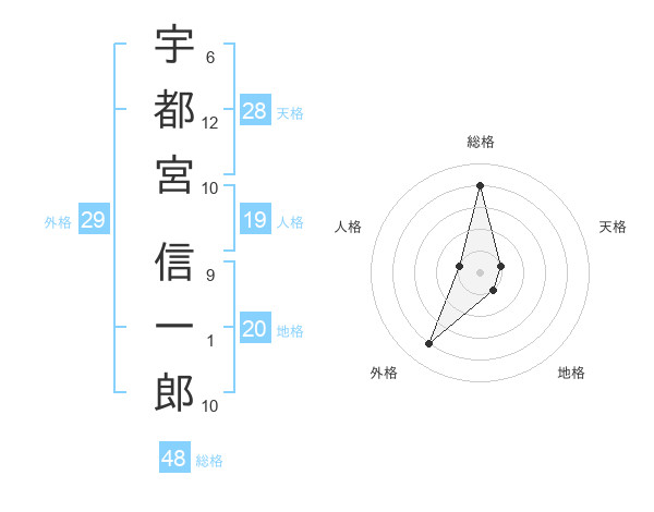 宇都宮 信一郎さんを姓名の画数から五運を鑑定